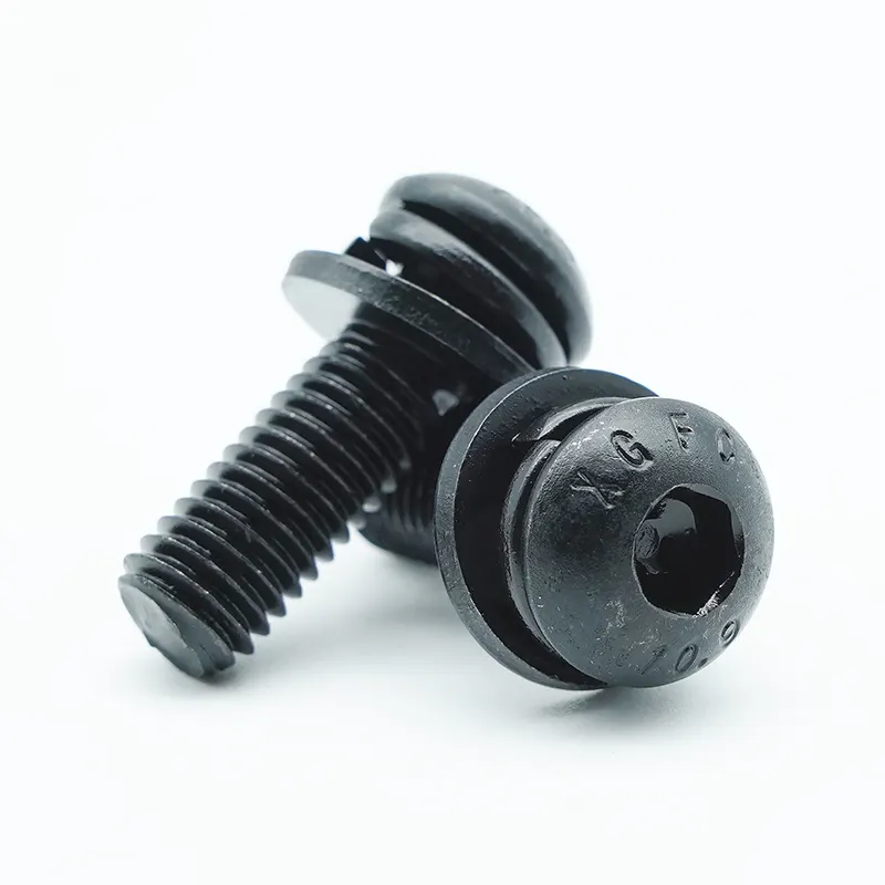 Slovenski Jinsixi'nin Siyah Oksit Hex Soket Düğmesi Kafa Kombinasyon Vidaları, vidalar, düz rondelalar ve yay pulları ile fabrikada monte edilir. Vidalar ana sabitleme kuvvetini sağlar, düz pullar konektörün yüzeyi ile yay rondelaları arasında bulunur ve yay pulları düz rondelalar ve vida kafaları arasında bulunur. Montajdan sonra, yıkayıcılar vidalardan kolayca düşmeyecek ve çok fazla montaj zamanı ve çaba tasarrufu sağlarken taşınmayı, depolamayı ve kullanmayı kolaylaştırmayacaktır.