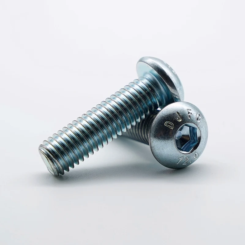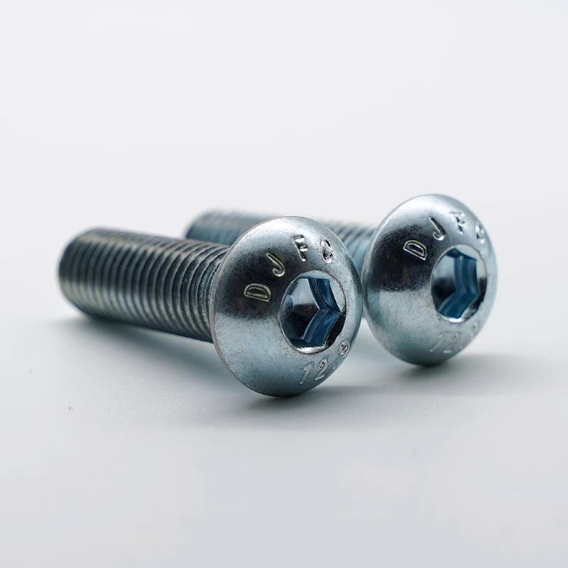 Galvanizli Altıgen Soket Düğme Başlı Vidalar için kullanılan elektro galvanizleme işlemi, düzgün kaplama ve pürüzsüz bir yüzey sağlamak için çinko katmanının düşük sıcaklıkta elektrik akımı yoluyla birikmesini hassas bir şekilde kontrol etmektir. 12,9 dereceli yüksek mukavemetli alt tabakanın mekanik özellikleri üzerinde minimum etkiye sahiptir ve hidrojen gevrekleşmesi riskini etkili bir şekilde ortadan kaldırır. İş parçasının boyutunu değiştirmez ve özellikle hassas montaj ve sonraki boyama ihtiyaçları için uygundur. Sıcak daldırma galvanizlemeyle karşılaştırıldığında elektro galvanizleme daha hassas bir görünüme, daha hassas boyut kontrolüne sahiptir ve endüstriyel standart parçalar için daha uygundur. 12.9 sınıfı, ultra yüksek mukavemetli bir kaliteyi temsil eder ve nihai çekme mukavemeti ve akma mukavemeti, sıradan karbon çeliği veya paslanmaz çelik vidalarınkini çok aşar. Aynı zamanda vidalara mükemmel çekme, kesme ve yorulma direnci kazandırır ve özellikle ağır yükler, darbe yükleri veya sürekli titreşimlerin olduğu zorlu çalışma koşulları için uygundur. Bağlantı güvenilirliğini sağlamak için yüksek ön yük gerektiren uygulamalarda önemli avantajlara sahiptir.