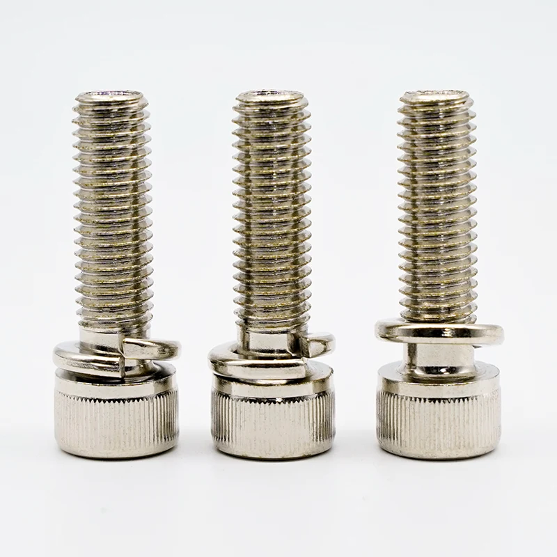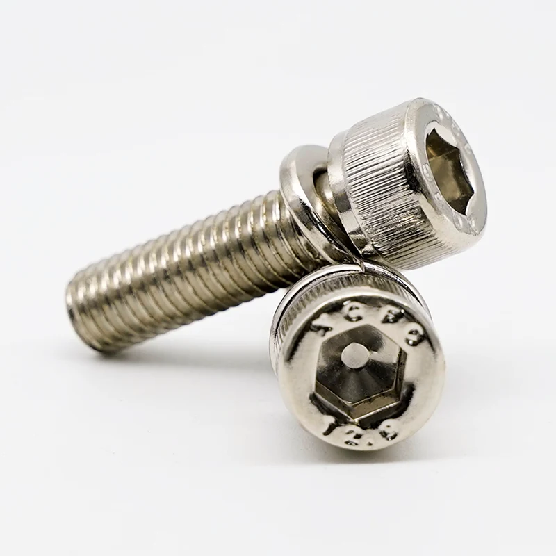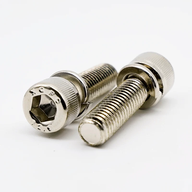 Otomatik montaj hatlarında önceden monte edilmiş vidaların kullanılması üretim verimliliğini önemli ölçüde artırabilir, işçilik saatlerinden tasarruf edebilir ve hata oranlarını azaltabilir. Yüksek mukavemetli Nikel kaplı Altıgen Soket Başlı Başlık Vidalarımız, Yaylı Rondelalı, hidrojen giderme işlemine tabi tutulur, böylece hidrojen gevrekleşmesi sorunları ortadan kaldırılır. Önceden monte edildikleri ve daha sonra elektrolizle kaplandıkları için vida, yaylı rondelalar ve bunların temas noktalarının tümü kaplama ile kaplanarak birleşik bir bütün oluşturulur. Nikel kaplama, düzgün ve parlak bir görünümle birlikte iyi pas ve korozyon direnci sağlar. Bağlanan iki iş parçasının her ikisi de yüzey hasarına duyarlı olmayan sert, düz malzemeler olduğunda, Yaylı Rondelalı Nikel Kaplama Altıgen Soket Başlı Kapak Vidaları gevşemeyi etkili bir şekilde önler ve estetiği artırır. Gevşemeyi önleyen temel önlemlerin alınmasını gerektiren ve görünümün ön planda tutulduğu senaryolarda entegre bir çözüm sunar.